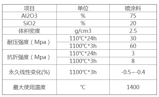 喷涂料分类按材料体积密度分有轻质喷涂料、中重质喷涂料和重质喷涂料。轻质喷涂料用作保温和隔热衬,中重质喷涂料既可作隔热衬里,而重质喷涂料主要作工作衬里。
