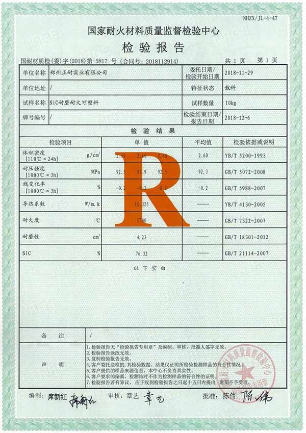 - 下一篇:SiC耐磨耐火可塑料检验报告