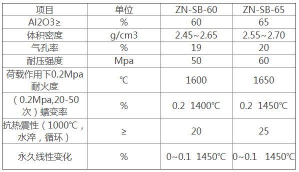 二氧化硅含量94%以上。真密度2.35g/cm3。具有抗酸性渣侵蚀性能。较高的高温强度。荷重软化开始温度1620~1670℃。在高温下长期使用不变形。